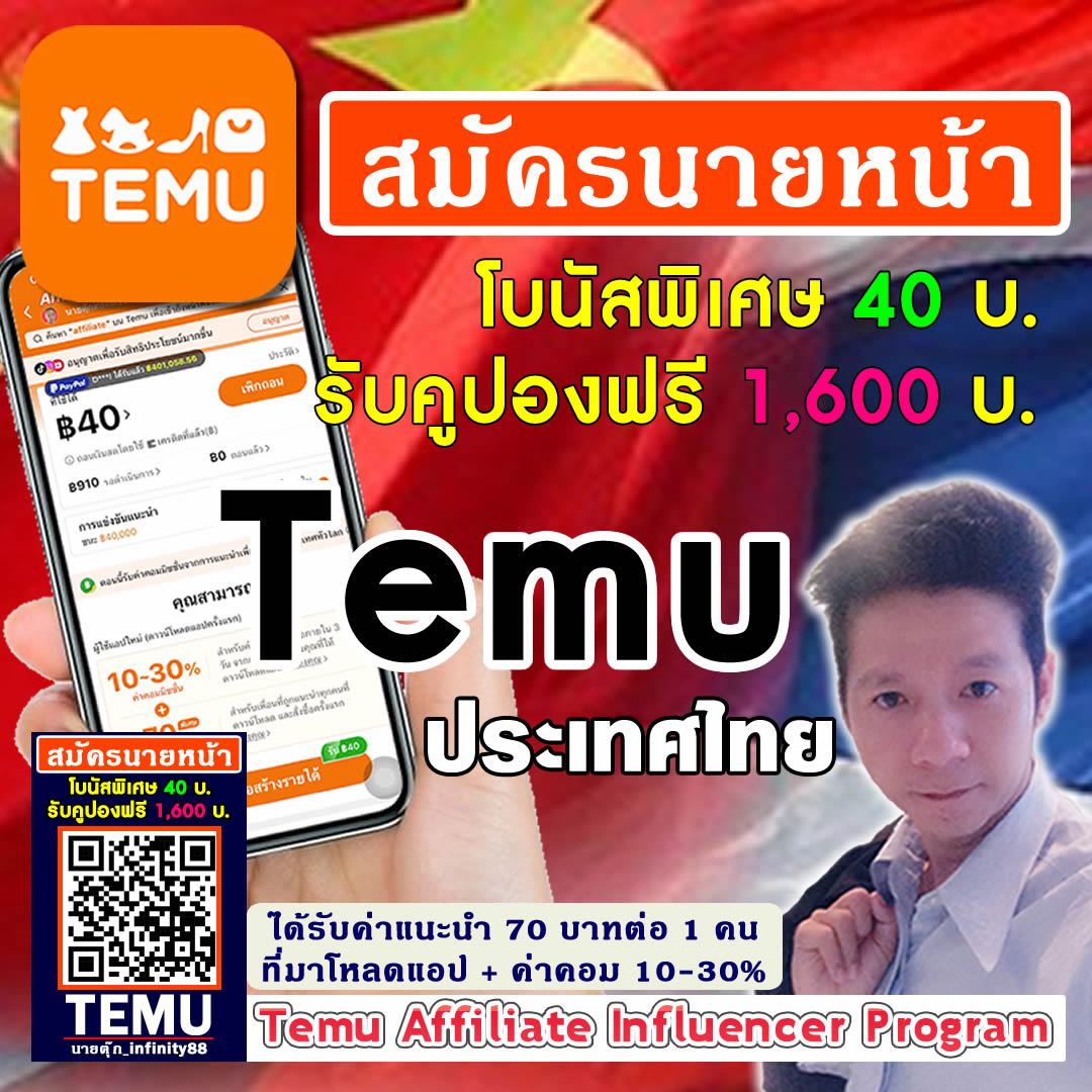 สมัคร Temu Affiliate Influencer Program นายหน้า temu thailand